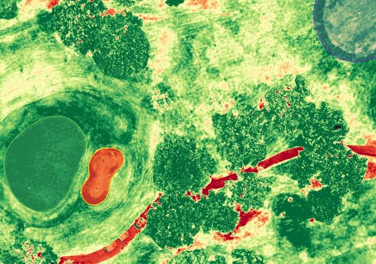 Monitor turf and trees with thermal and multispectral imaging to detect stress, pests, and diseases early.